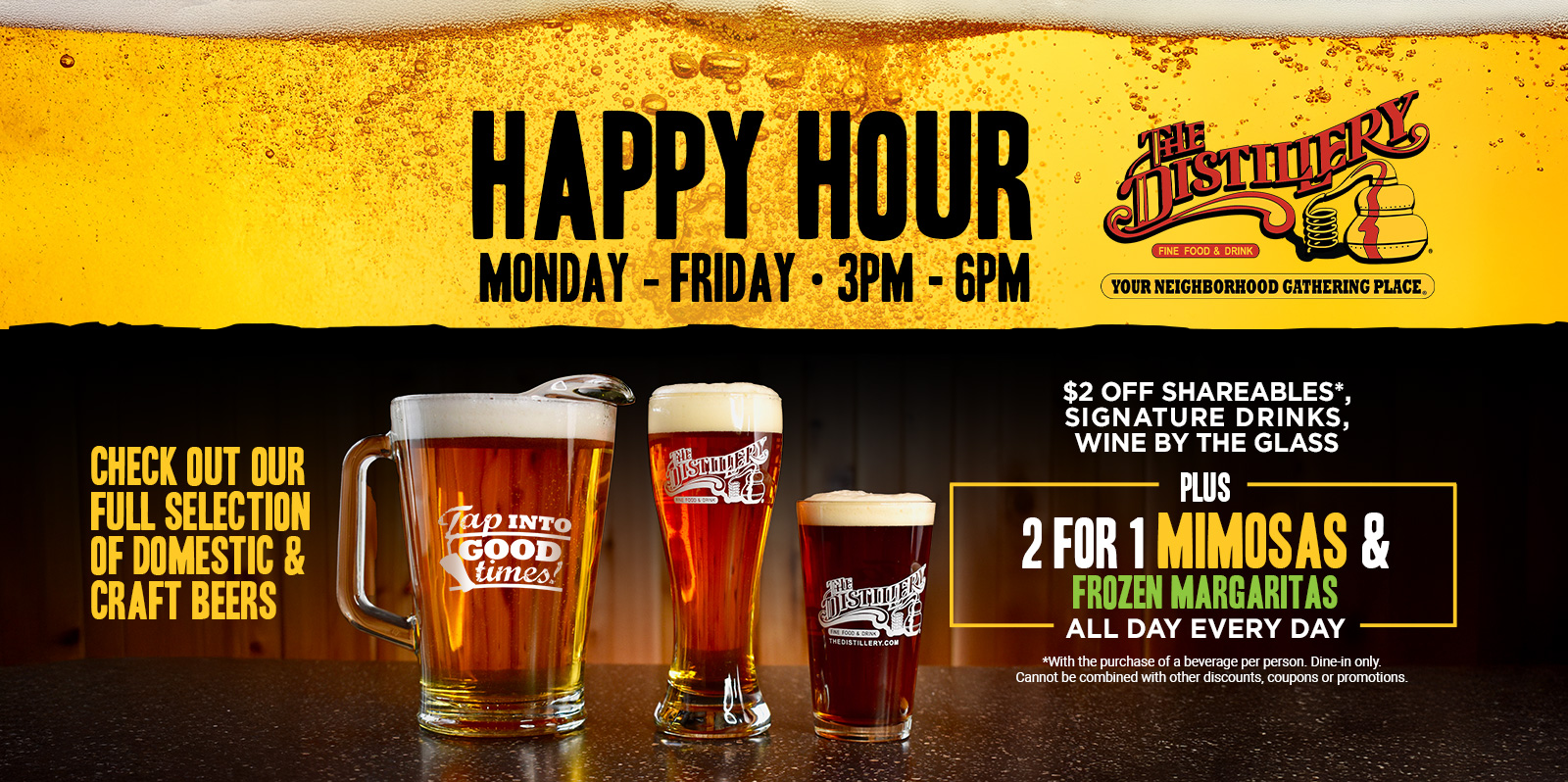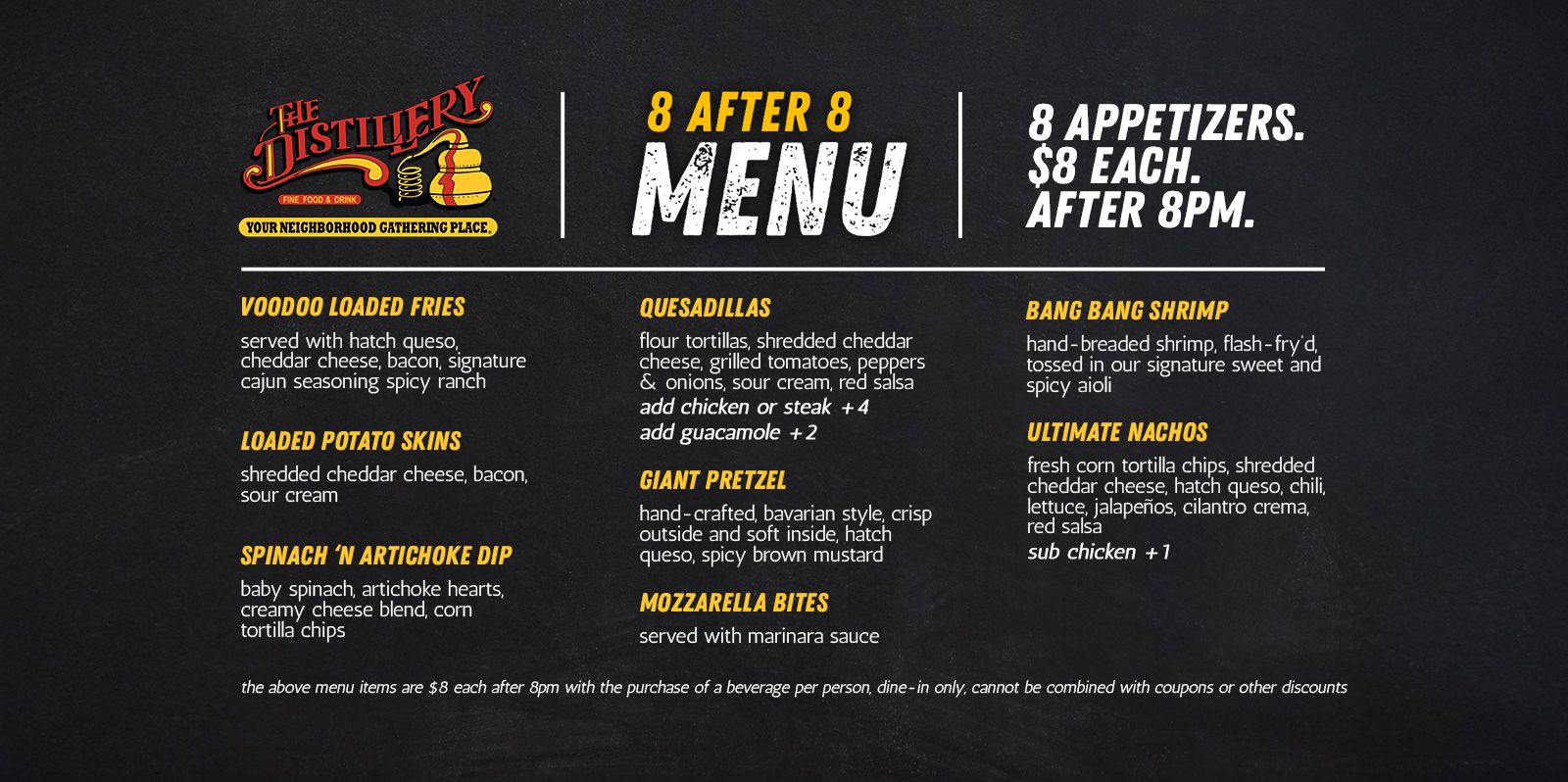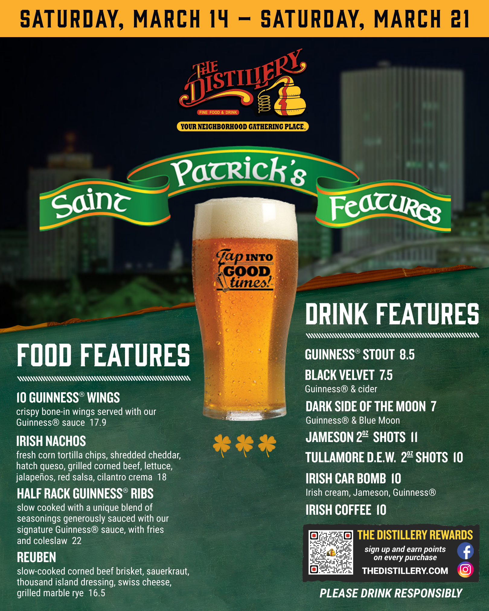 Join our Loyalty Rewards Program and receive 200 points (equivalent to $10) simply for signing up and then earn reward points on every purchase when visiting The Distillery Restaurant!